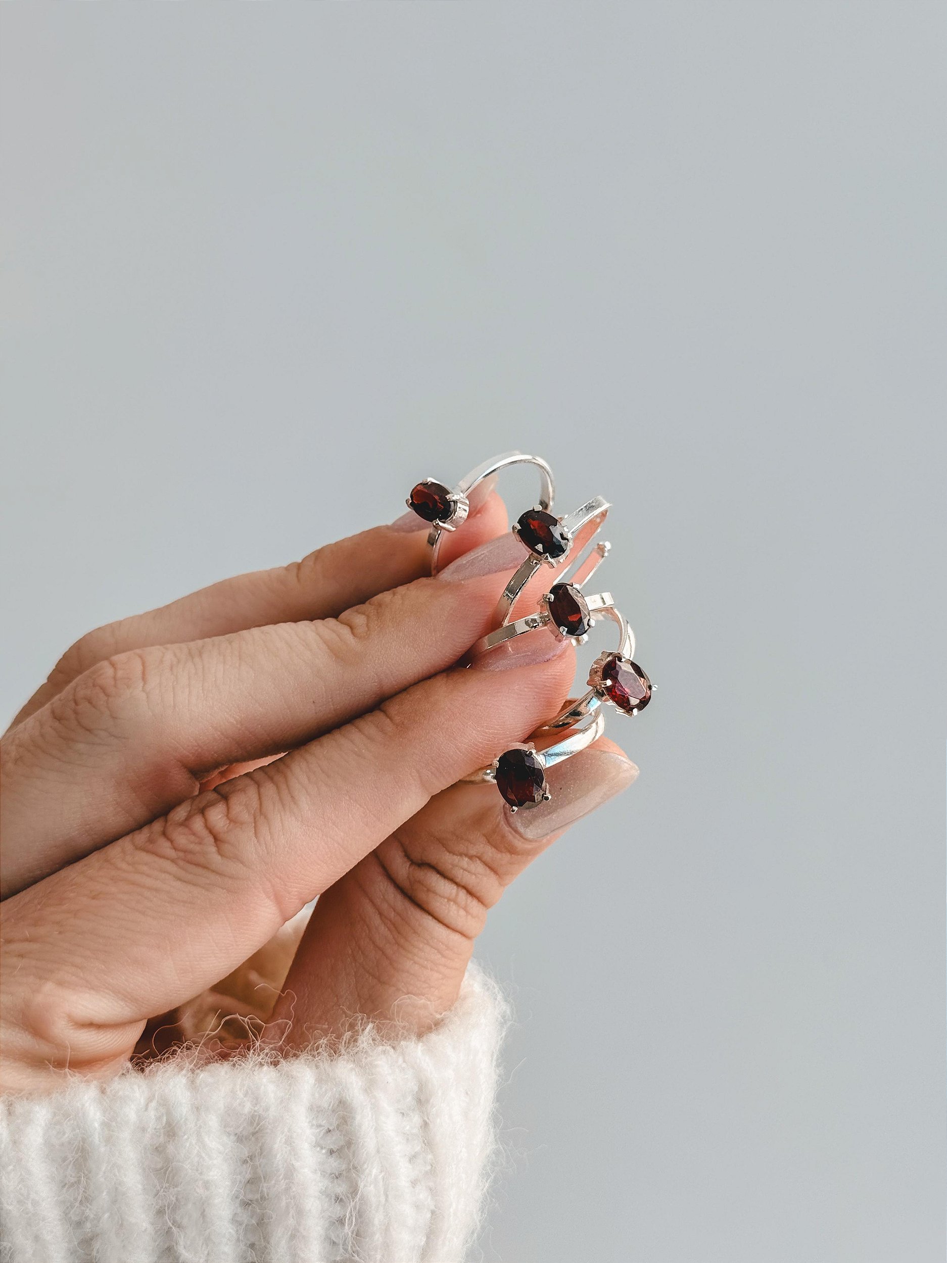 1 unidade de anel regulável de prata 925 com Granada lapidada em gema